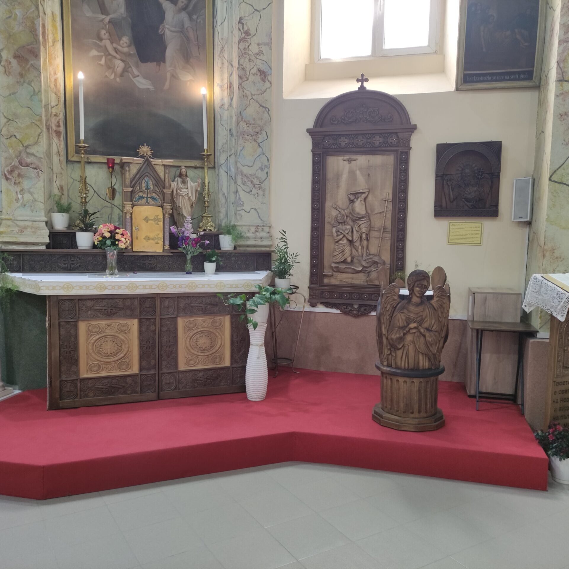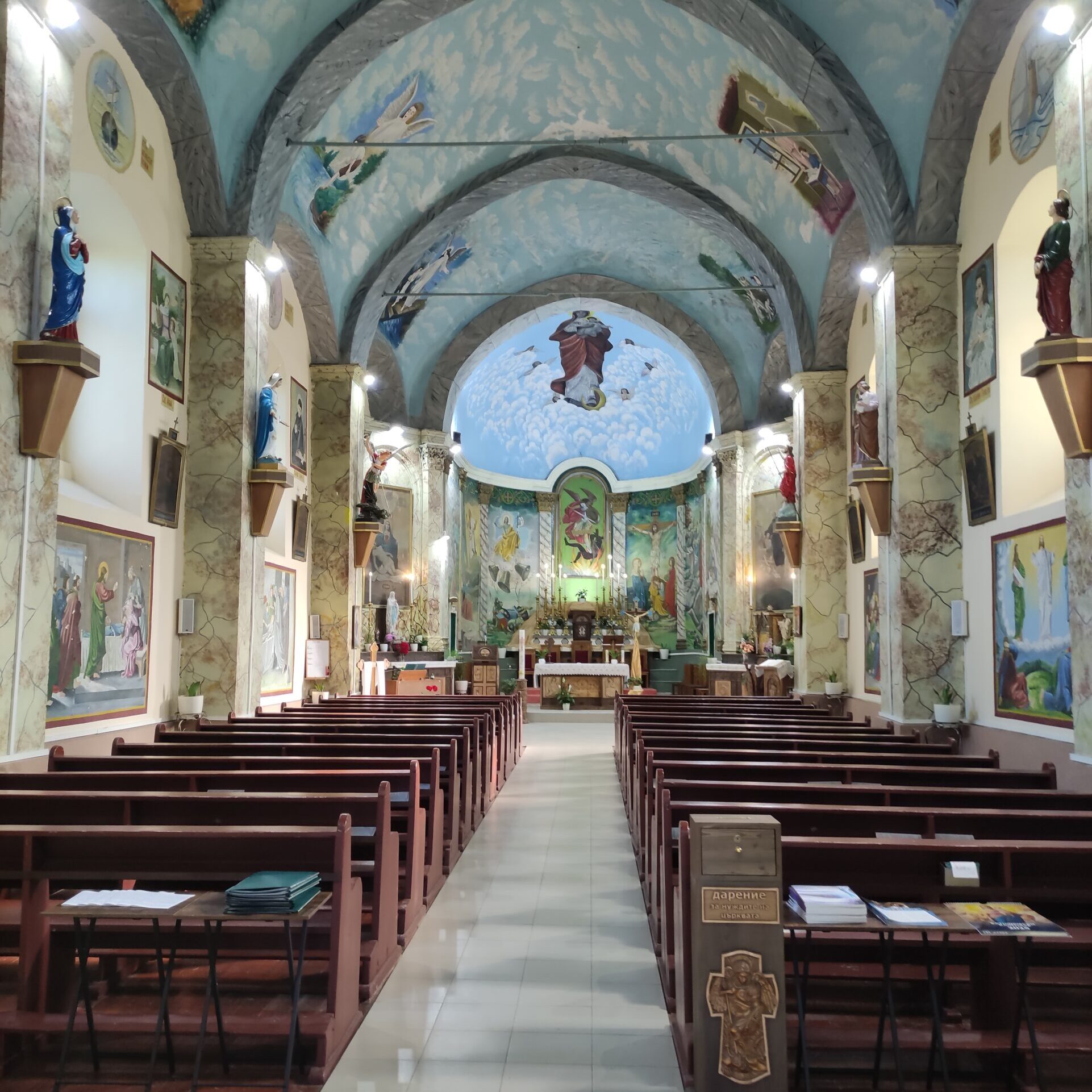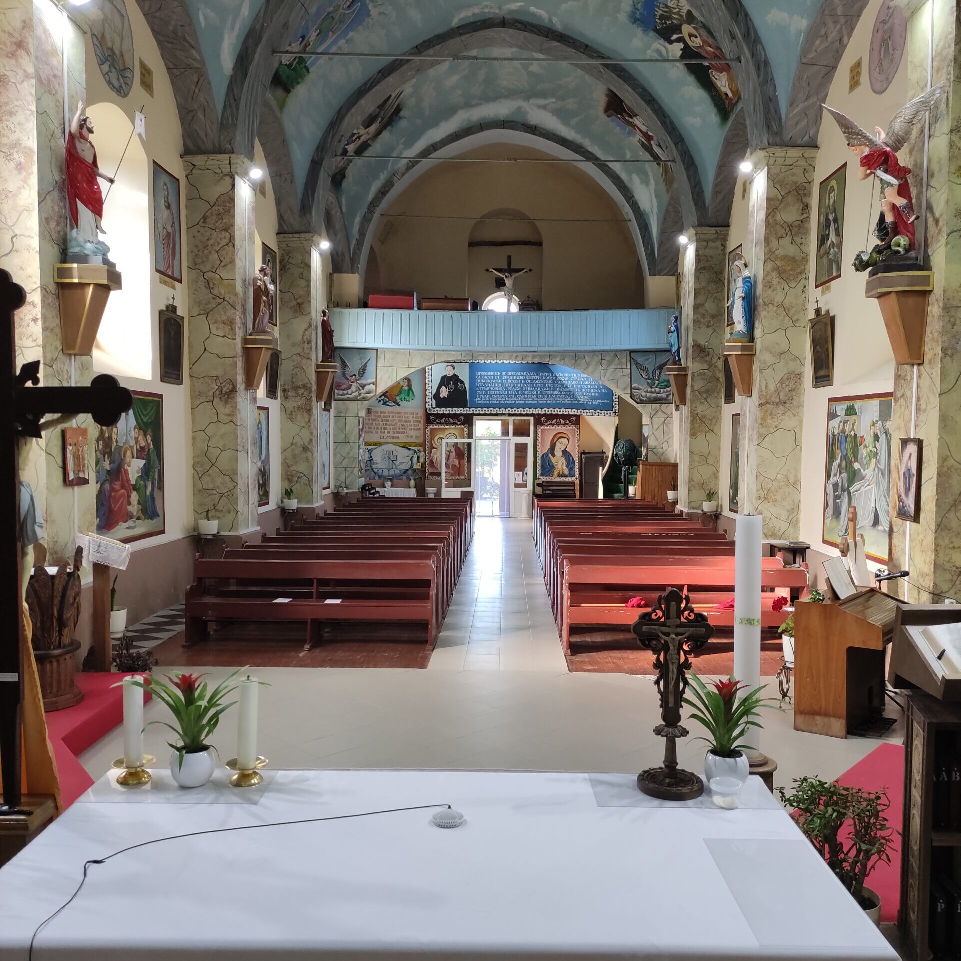 През 1820 г. Филип Скуарча успял да построи една малка църква. По силата на османския Хатихумаюн от 1856 г., даващ религиозна свобода, Никополския епископ Монс. Анджело Парси поръчал в Букурещ камбана за църквата. Новата църква е построена през 1874 г. от майстор Генчо Кънев от Трявна, който е ученик на Кольо Фичето, по инициатива на италианския свещеник, пасионист Отец Валенте, а средствата се осигуряват от местни дарители и благодетели от Полша и от други католически страни. Църквата има следната структура: тя е еднокорабна, с дължина от 35 метра, широчина и височина 10 метра, а близо до западната стена на църквата има изградена великолепна кула – камбанария /звънарница/. През 1876 г. на нея са монтирани 3 камбани, камбанарията е изградена като самостоятелно тяло от дялан камък с височина 25 метра.