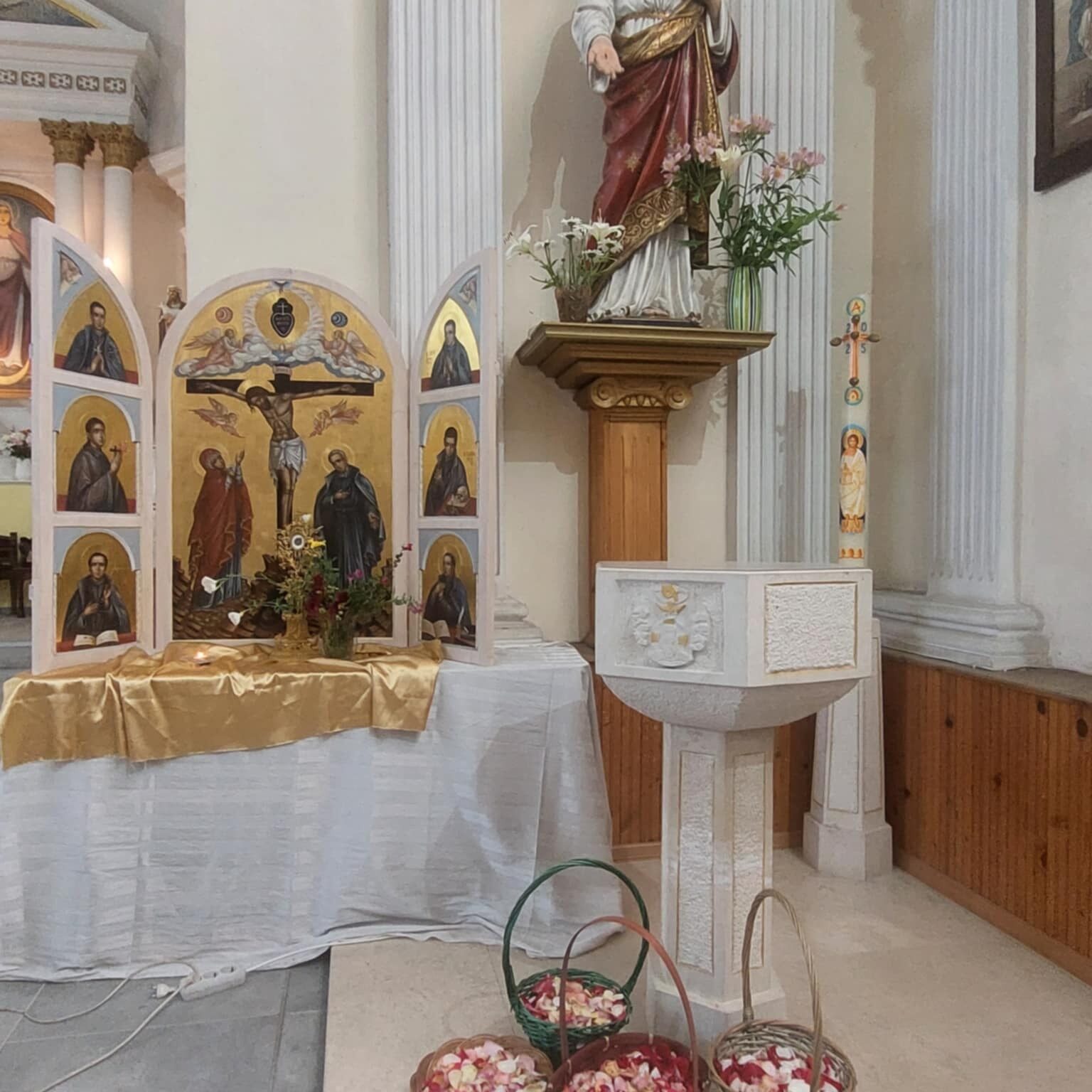 През 1806 година жителите на Ореше напускат старото си селище и се настаняват на сегашното място на Ореш. По това време енорийски свещеник бил отец Фортунат Ерколани, пасионист. Едно от най- хубавите места на припек, на една височина, било избрано за църковен двор. От това място се виждали и петте главни пътя в селото. Първа грижа на отец Ерколани била да построи една църква – тя била от леси и покрита с пръст.