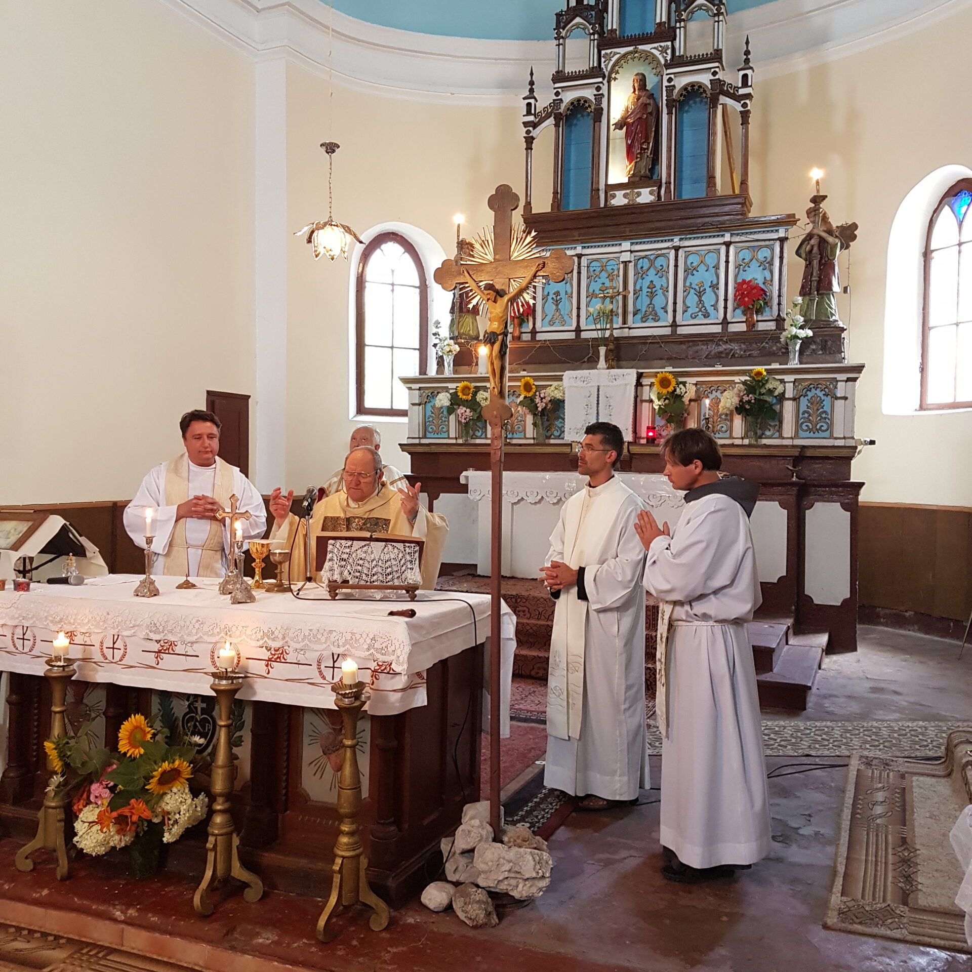 Черкoвните служби на банатските българи-католици през първите години след заселването се извършват в помещение на частна къща от пътуващи свещеници.
